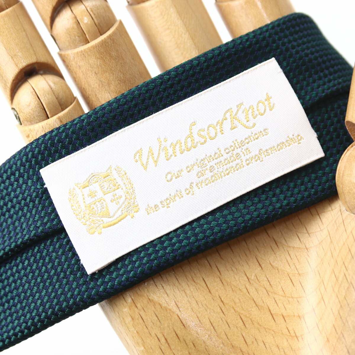 ドレスシャツ |ホワイトネーム |ネイビーネーム |ネクタイ ブランドWindsorknot Albert Avenue(ウィンザーノット アルバートアベニュー) ホワイトネーム大剣の幅約6.5cmタイの長さ約144cmベースカラーボトルグリーン 緑色の瓶の色名 ハンターズグリーン素材シルク100%素材特徴しっかり打ち込まれたバスケット織りの生地。