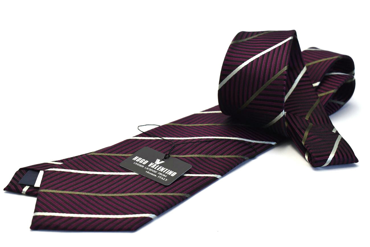 父の日 HUGO VALENTINO/ネクタイワイン/グレー/グリーン/ストライプtype-b-253