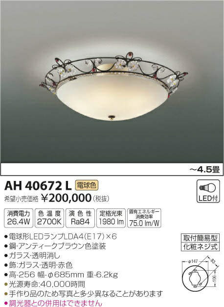 【最大44倍スーパーセール】コイズミ照明 AH40672L シーリングライト ilum LED付 電球色 〜4.5畳 アンティークブラウン