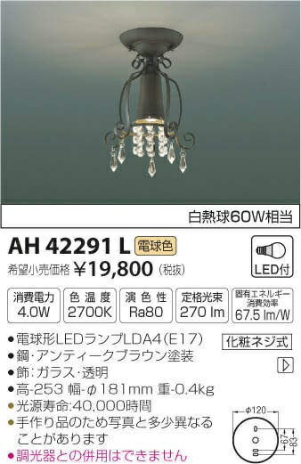 【最大44倍スーパーセール】コイズミ照明 AH42291L 小型シーリングライト 白熱球60W相当 LED一体型 電球色 ガラス アンティークブラウン